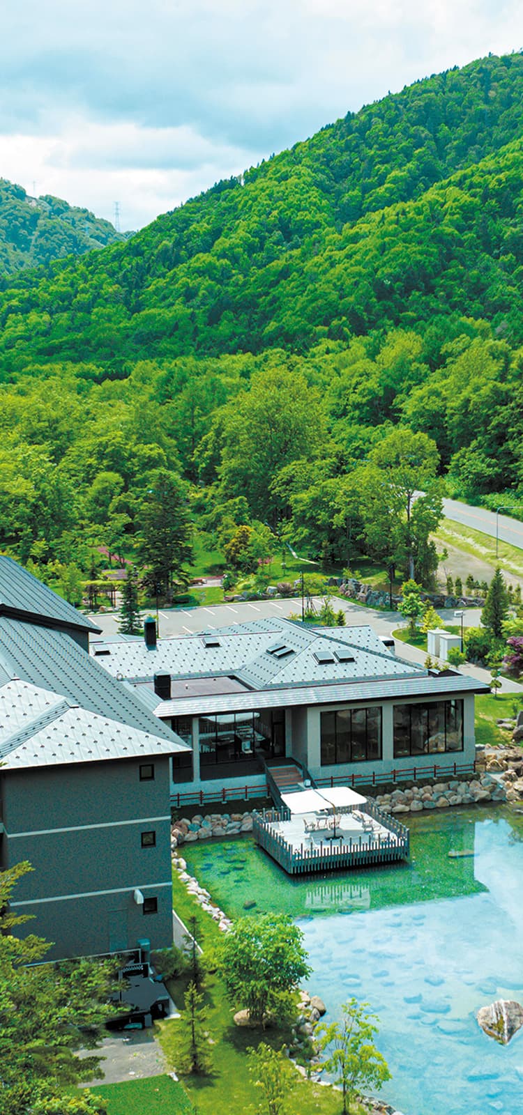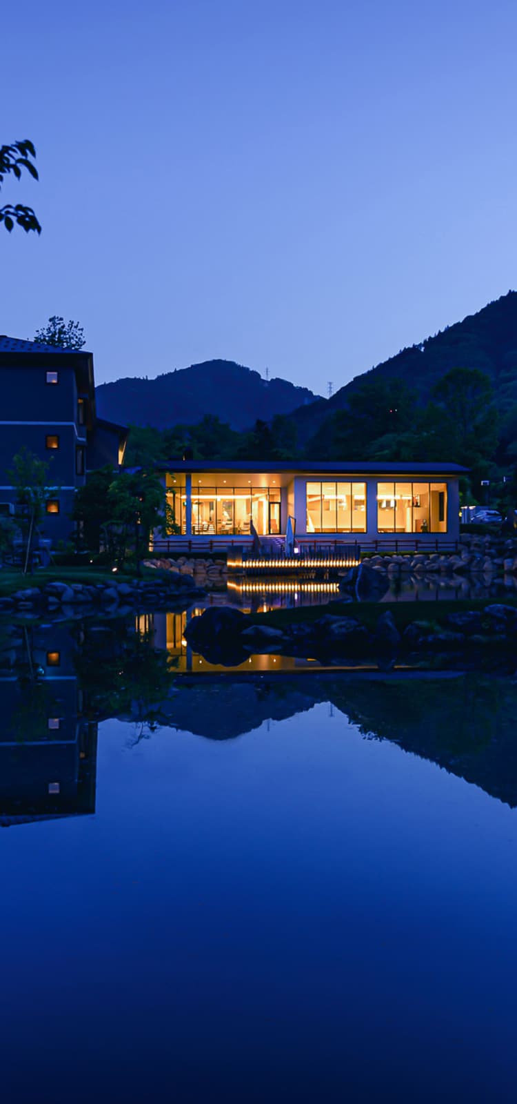 大きな池泉のある宿。
