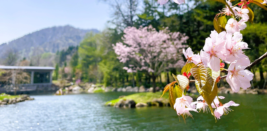 Our relaxing garden is the debut appearance of the trees and plants that have been raised in loving care here, including the Sakhalin firs,