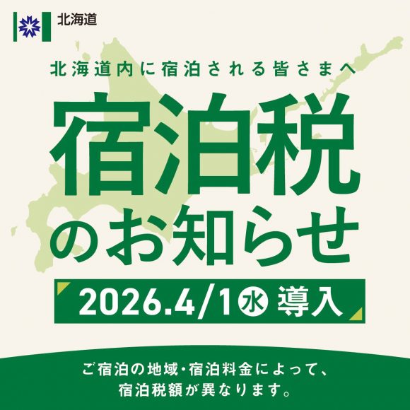 来年2026年4月より、北海道および札幌市において「宿泊税」が導入されることとなりました。